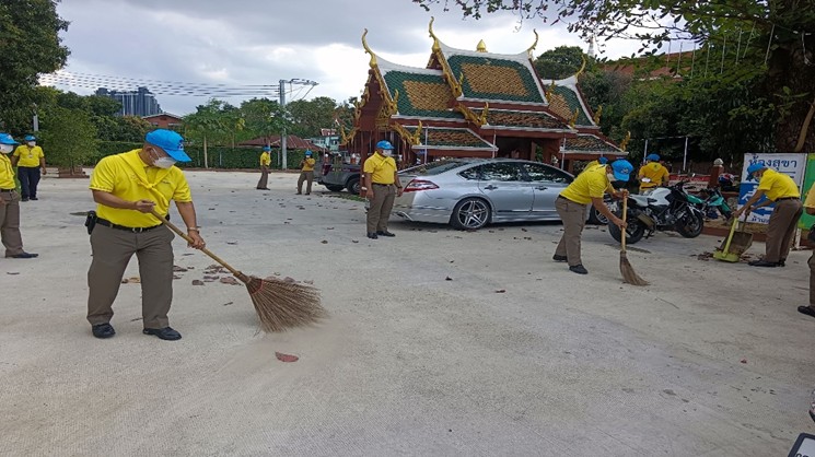 โดยร่วมกันทำความสะอาด ปรับภูมิทัศน์ บริเวณโดยรอบลานวัดประดู่ฉิมพลี ซ.เพชรเกษม 15 แขวงวัดท่าพระ เขตบางกอกใหญ่ กรุงเทพฯ